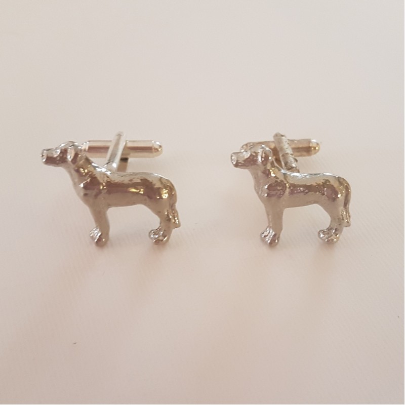 Pewter Cast Cuff links in the shape of a Labrador by Fulham Fox.