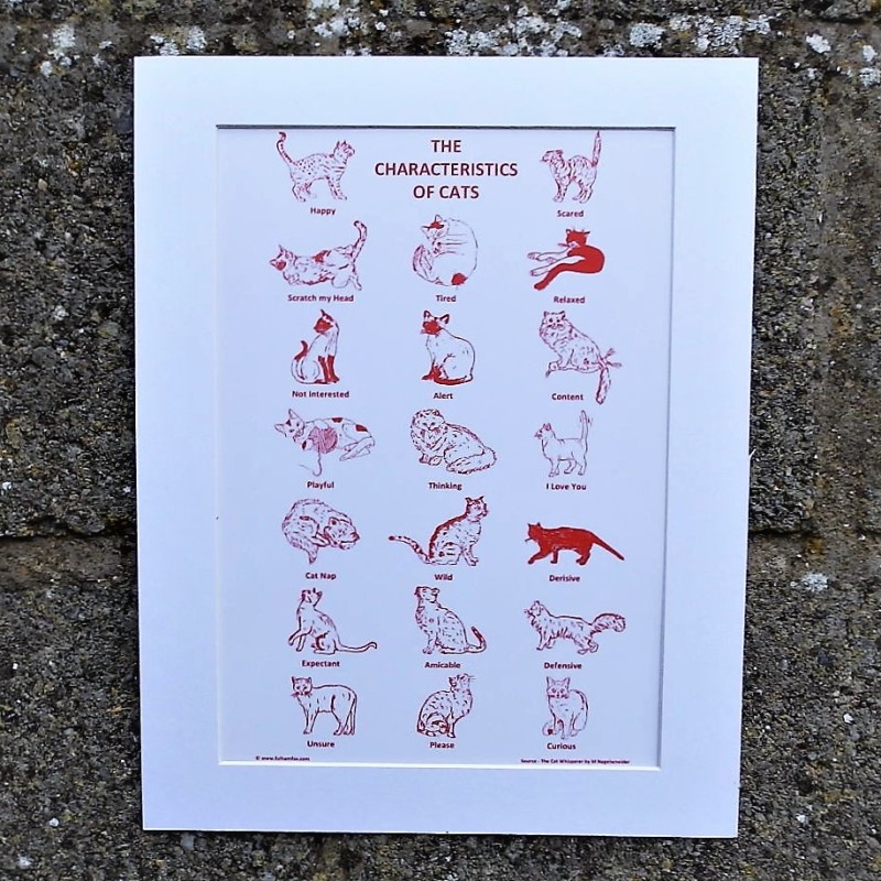 Our wonderful and exciting characteristics of cats design comes as a print with a choice of white or red mount - fit into a 14 x 11 inch frame.